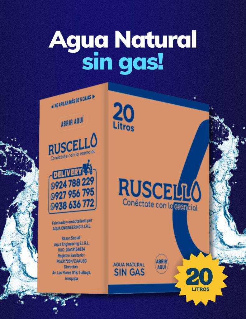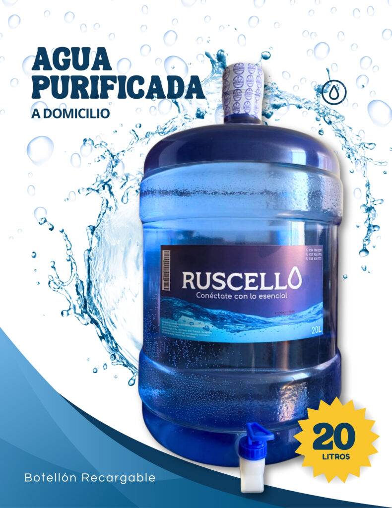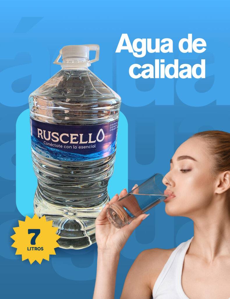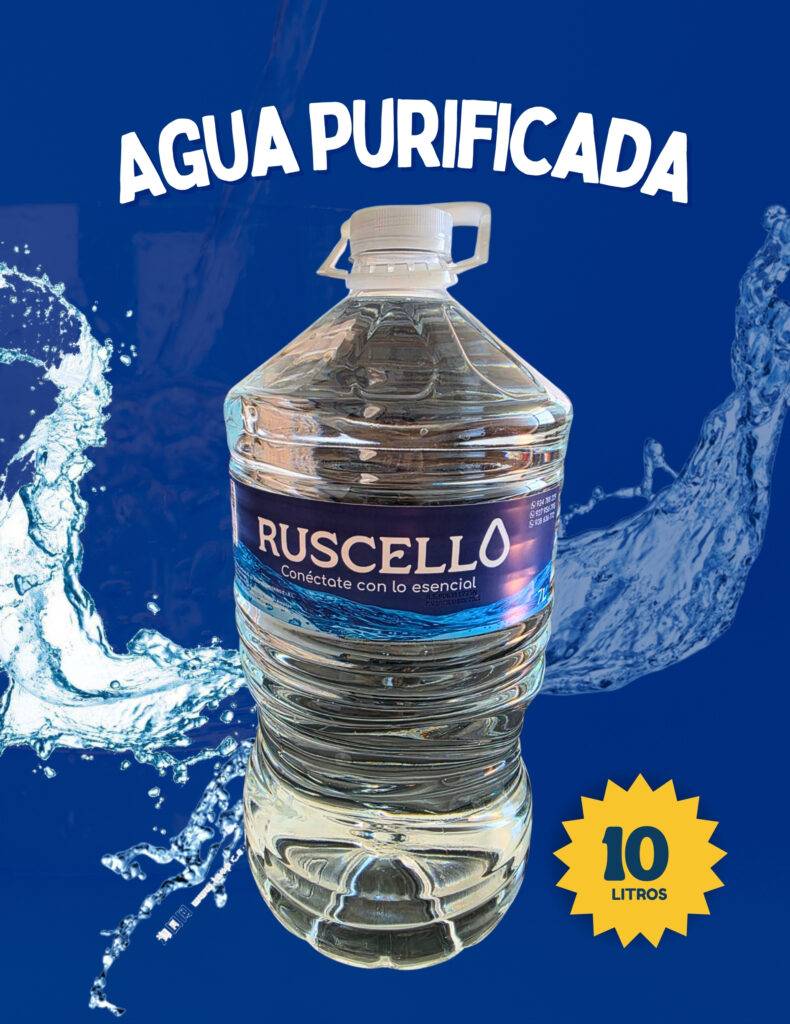 En RUSCELLO nos especializamos en la producción y distribución de agua embotellada de la más alta calidad, diseñada para garantizar pureza, frescura y confianza en cada entrega. Nuestros procesos cumplen con los más estrictos estándares de seguridad e inocuidad, asegurando un producto saludable y confiable para el consumo humano.
